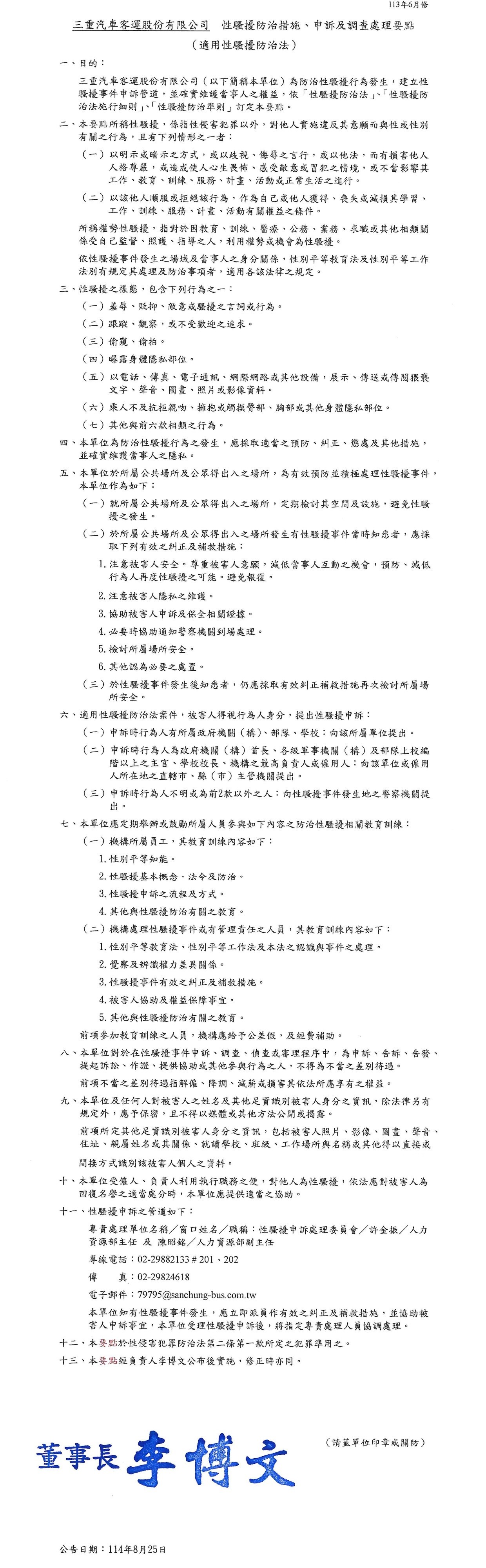 >三重汽車客運性騷擾防治申訴及調查處理辦法